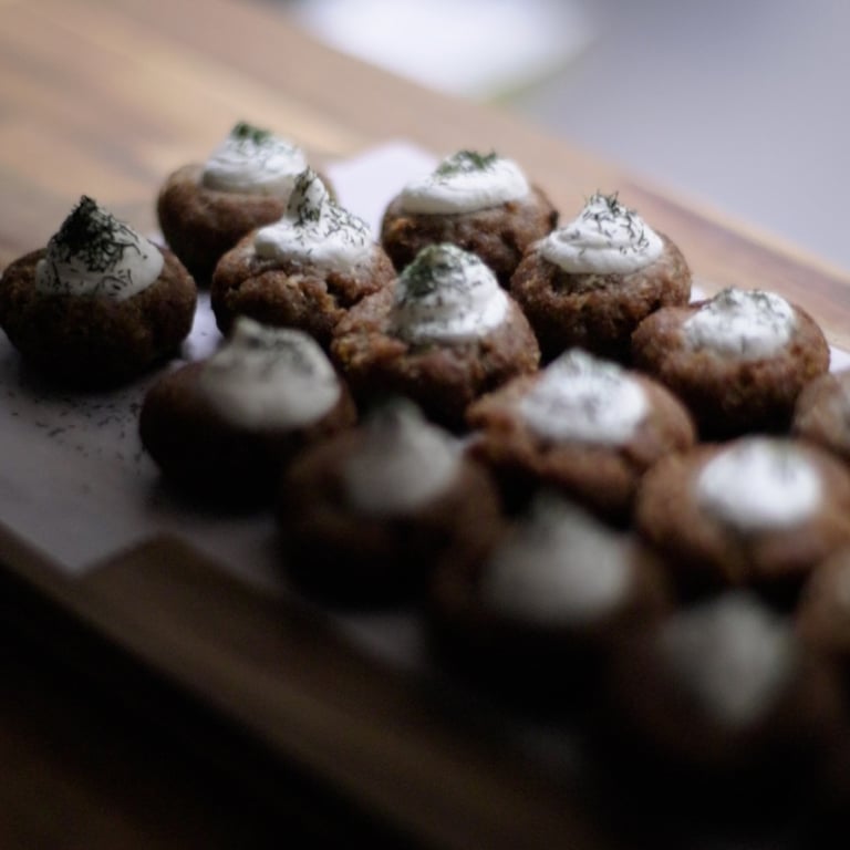 Purée de viande d’agneau, mélangée avec du boulgour, sept épices pignons de pin et noix.