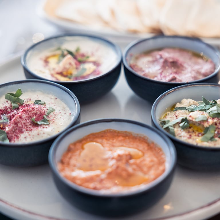 Dégustation de 5 mini-mézzés froids au choix et pain maison